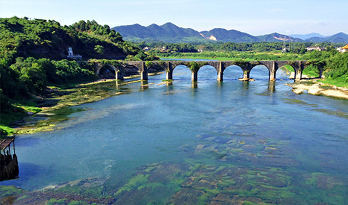 万福桥位于湖南省湘乡市西南五公里处的洙津渡,横跨涟水,衔接湘潭与邵阳,是湖南省颇有名气的大型石拱桥。清代以前,有湖南民谣说:“走尽天下路,难过洙津渡”。《南中纪闻》载:“洙津渡渡夫最刁,客担经涉,受其逼诈者无不切齿。”对此,邵阳人徐公明非常气愤,决心变卖家产,广募资金,在渡口修一座桥。