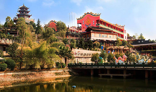 壶天古街始建于清代,已有200多年历史,有一条长414米的古色古香的青石板路,古街建筑面积2万多平方米,分上、下街和横街,房屋结构三进五间,基本保持了旧时风貌,典朴风韵。每年的农历正月十二至十五日为时三天,有传承至今的壶天火龙灯节,是壶天人民酬神祈福,舞火龙灯的大喜日子,活动期间全镇动员,排街、启猖、出龙、沿街舞龙,十分热闹。